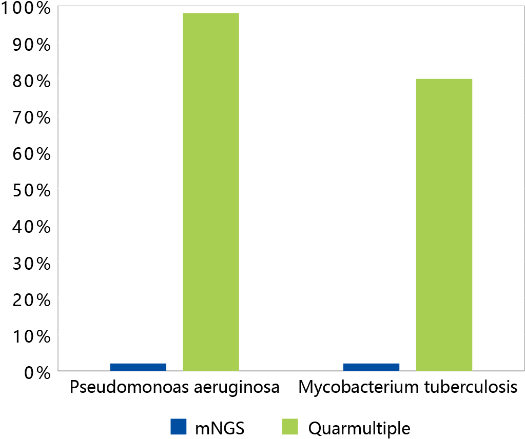 图1. 两个样本的mNGS和超多重PCR富集方法(NZ4003A)比较。纵轴是序列占比,富集效果明显。